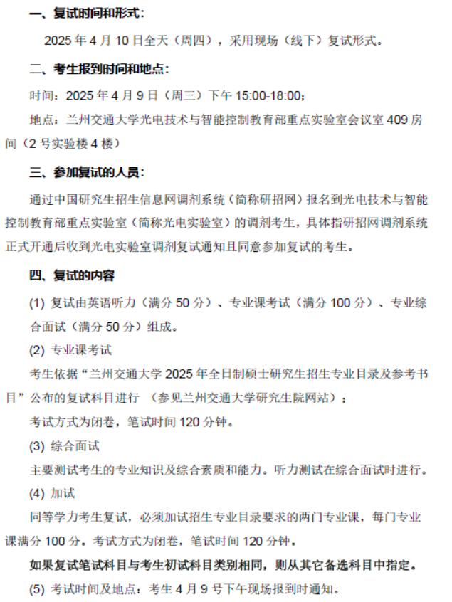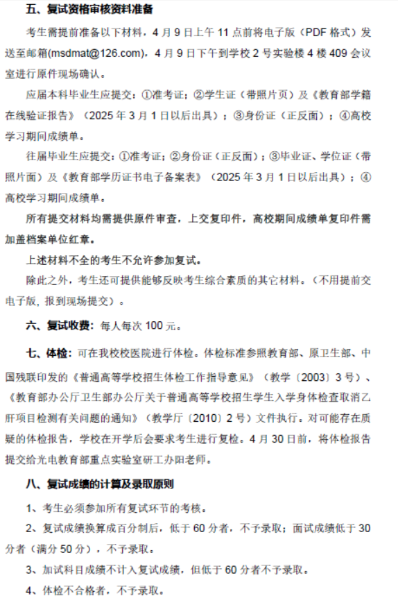 2025年光电教育部重点实验室硕士研究生调剂考生招生复试通知...